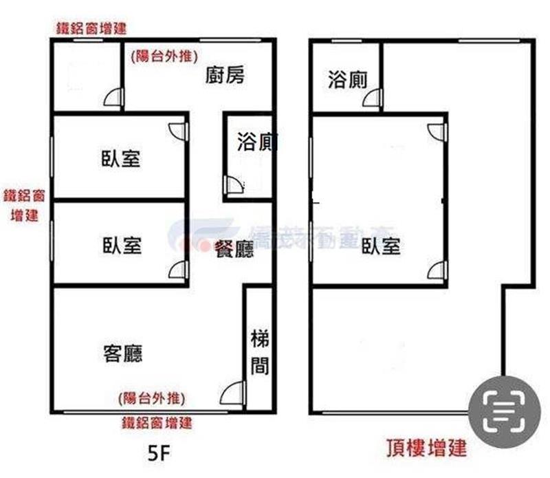 5樓2房2廳1衛1廚,6樓2房2廳1衛