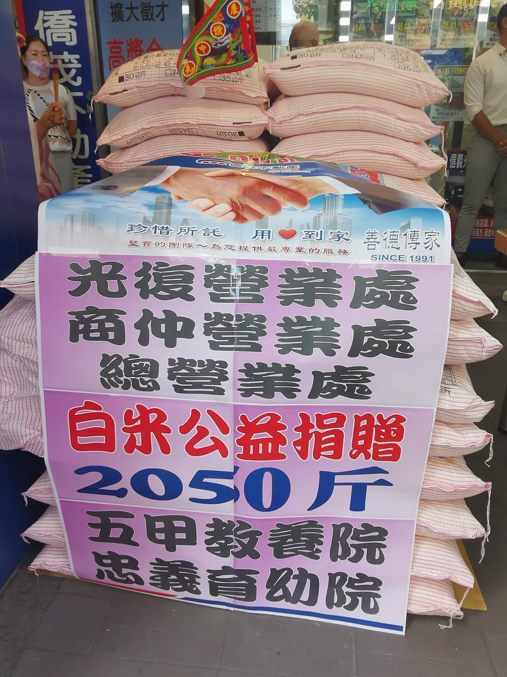 我們三個營業處今年共捐贈了超過3250斤白米